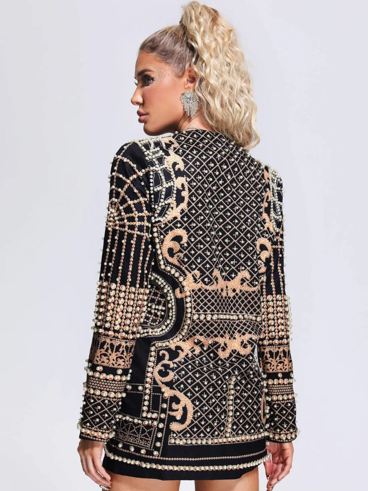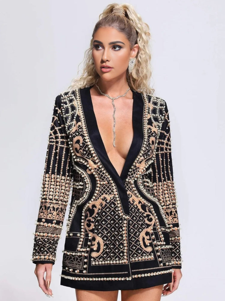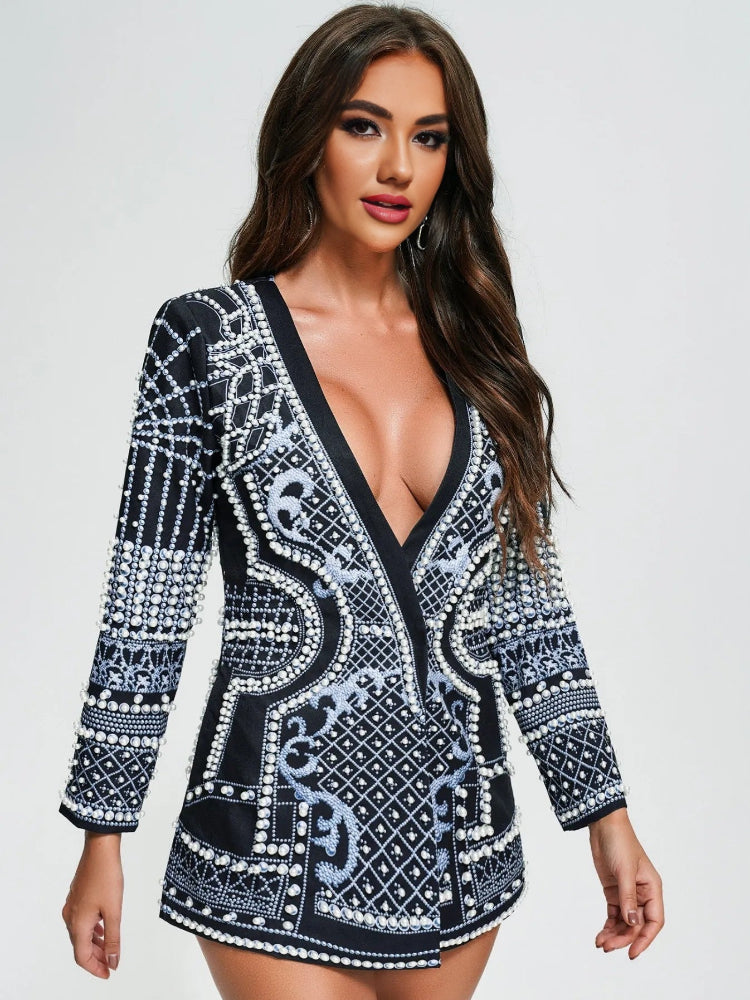 Black Fashion Pearl V-neck Dress