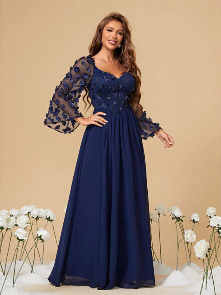 • Fashion plus size chiffon embroidered lace sleeve dress