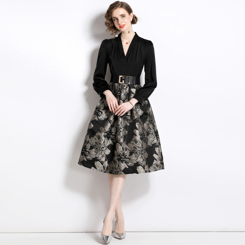 Long Sleeve V-Neck Slim Fit Lace-Up Dress