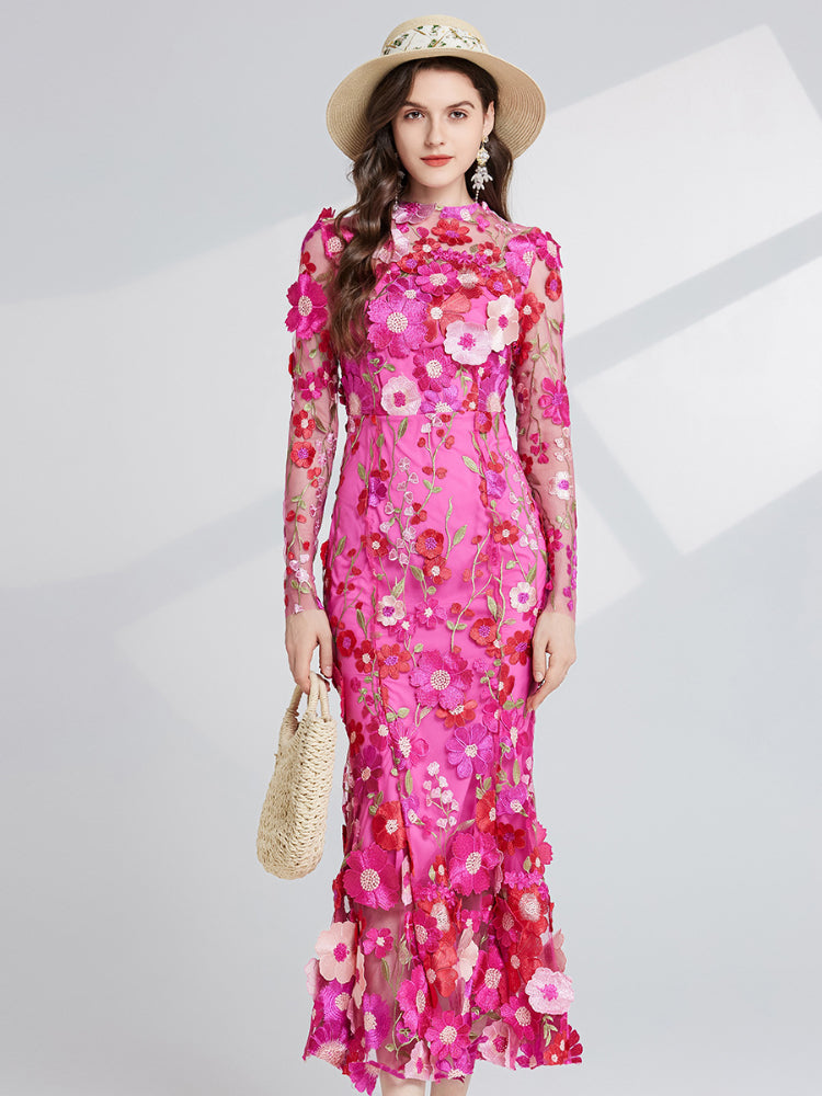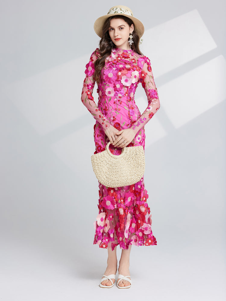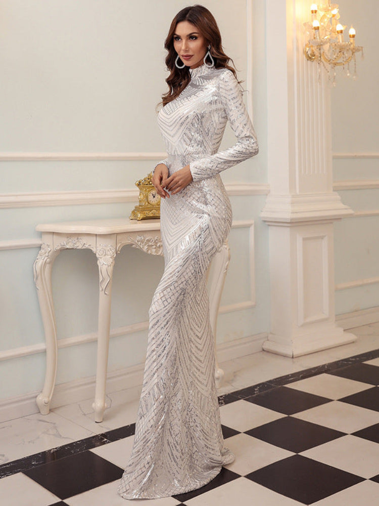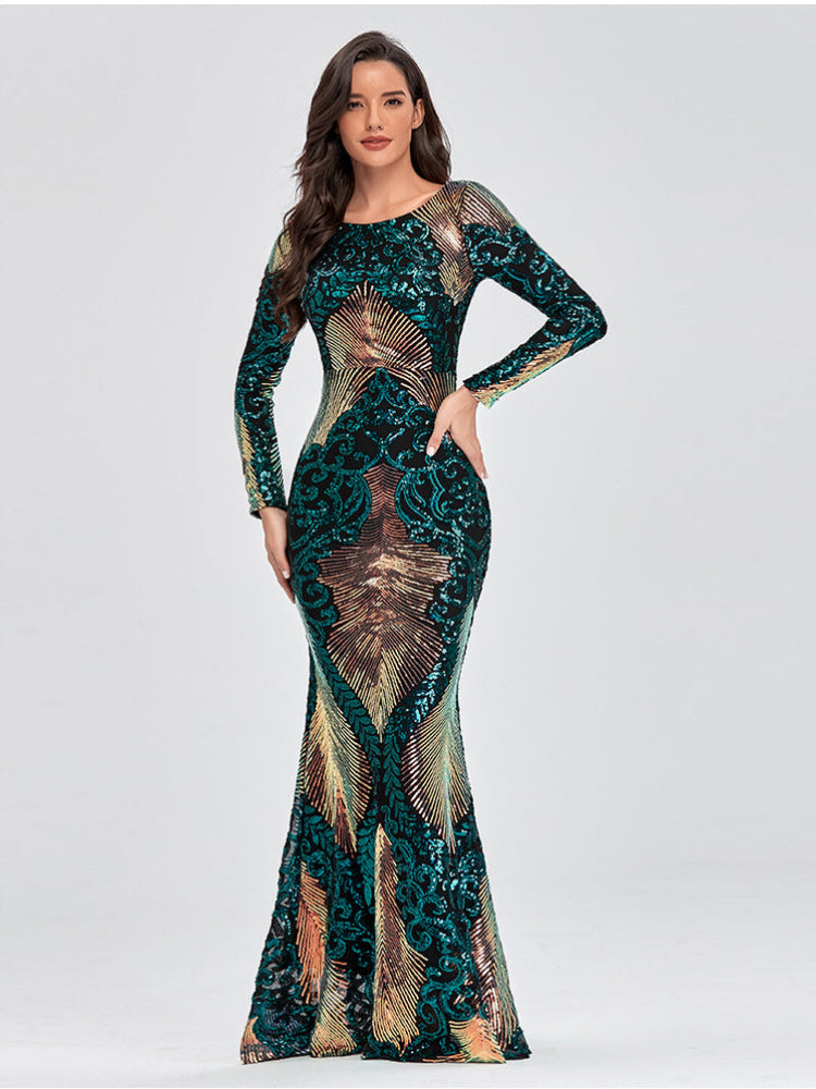 Printed Sequin Sexy Slim Long Sleeve Dress