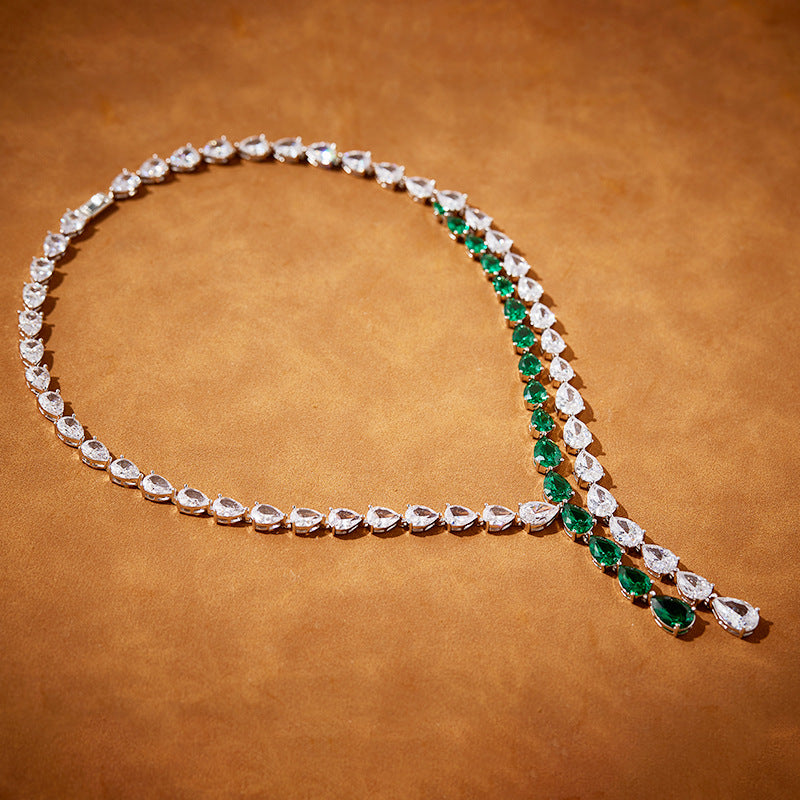 Double Pink Pear-Shaped Tassel Necklace