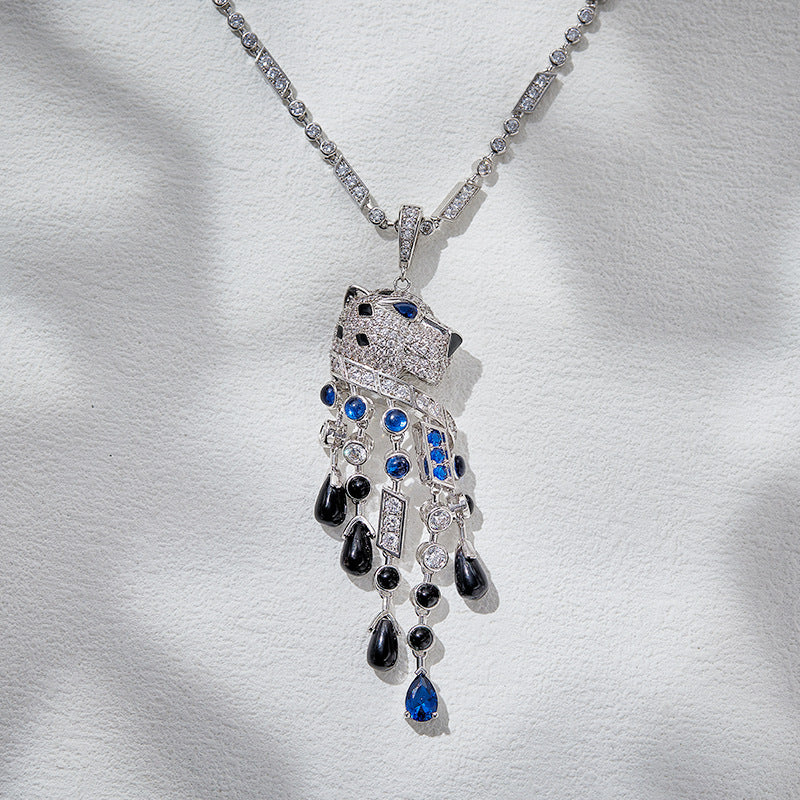 Gold-plated blue-eyed personalized leopard fringed earrings