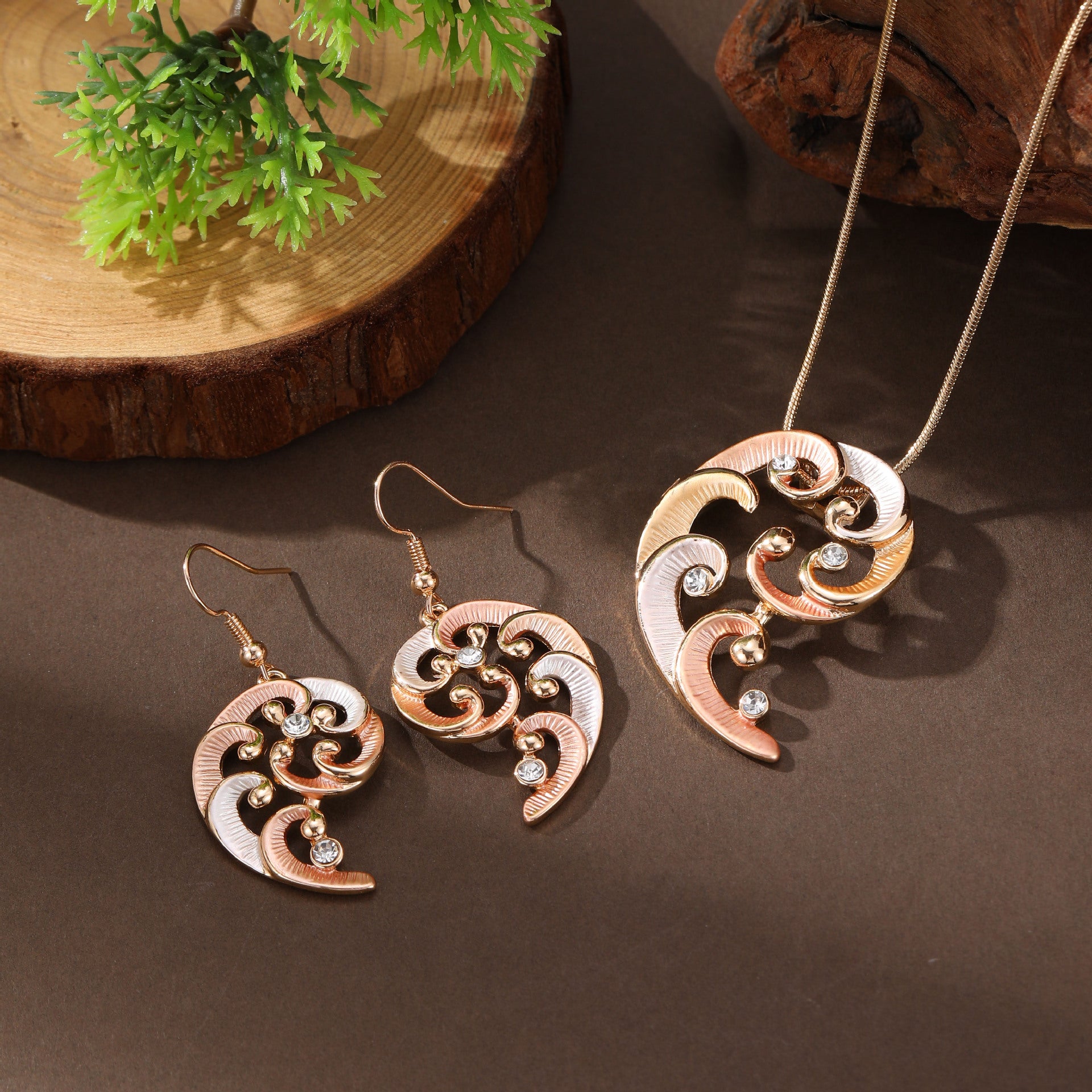 Hollow geometric petal earrings necklace series