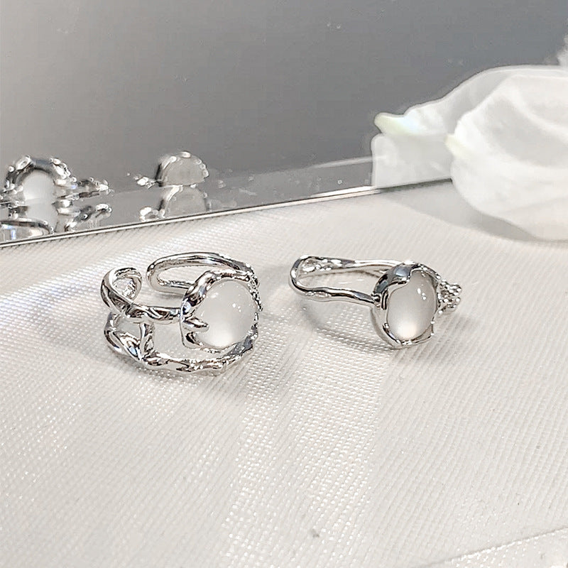 Silver niche moonstone ring