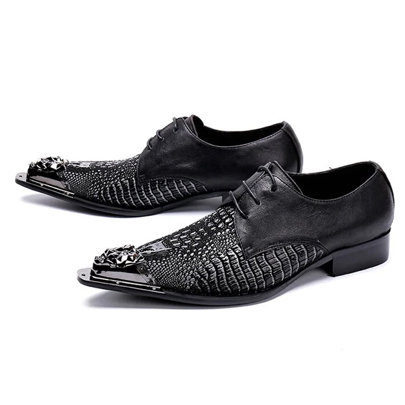 • Black pointed crocodile patterned lace up dress shoes for men Plus Size black genuine leather banquet