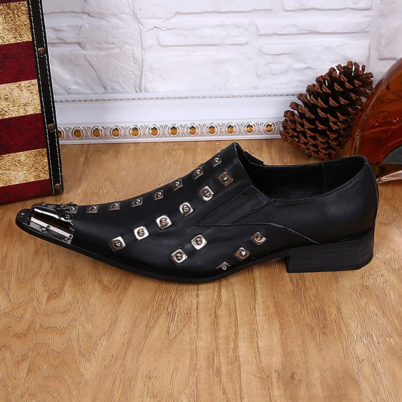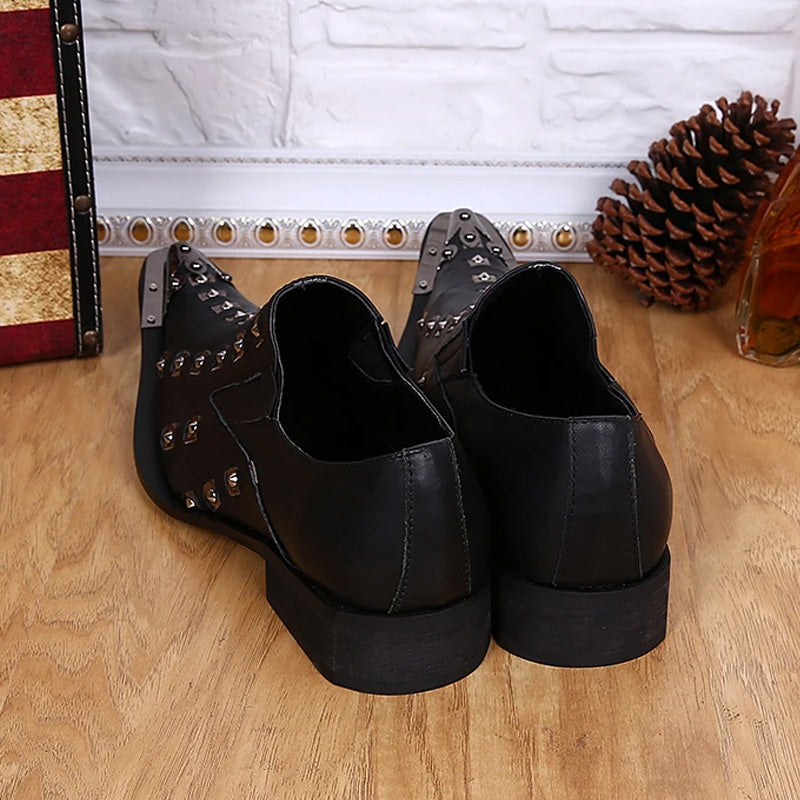 Black pointed rivet men's business dress shoes for men banquet and party luxury designer leather shoes