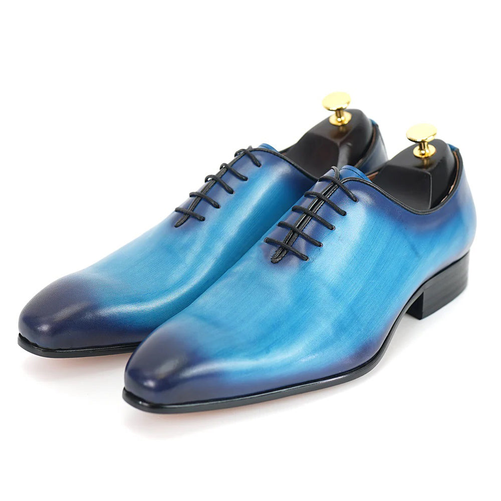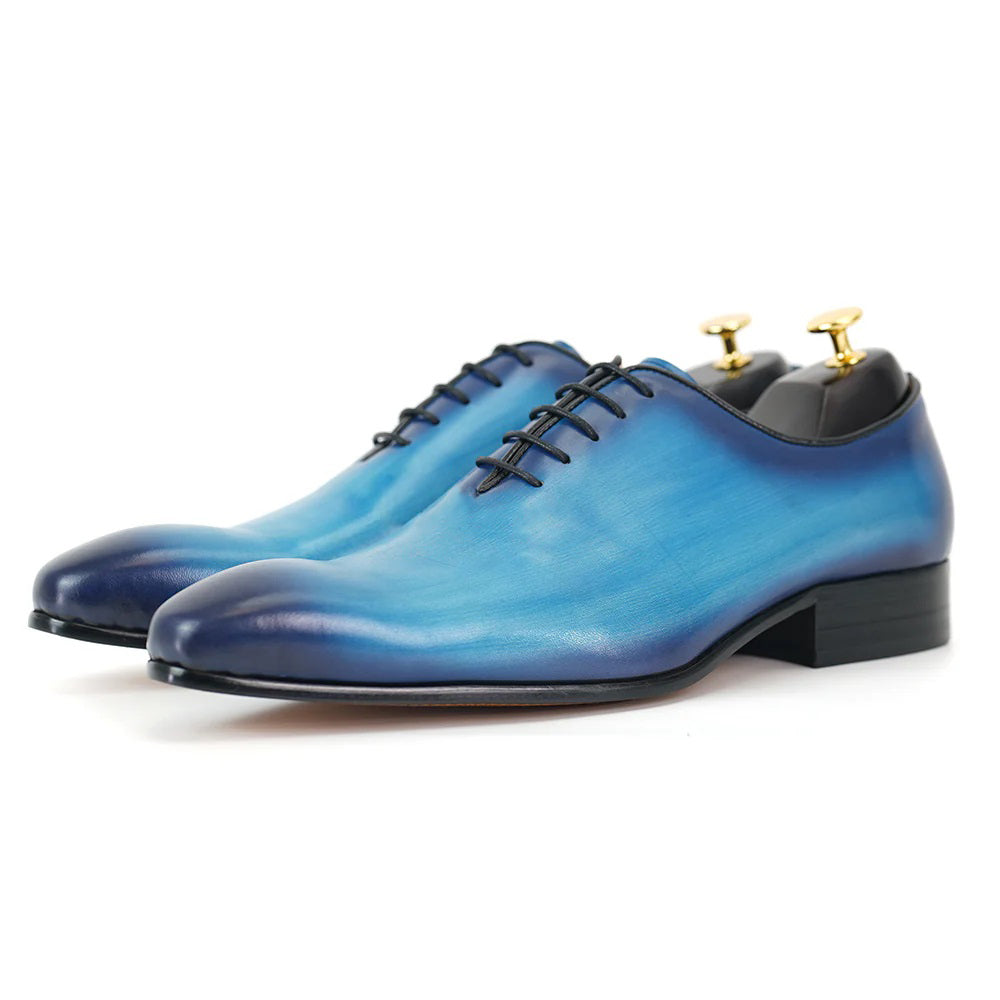 Blue leather oxford shoes, men's wedding business formal shoes, men's brogue shoes, Derby shoes, men's banquet shoes,dress shoes for men,Office, Party, Banquet, Wedding,genuine leather shoes men
