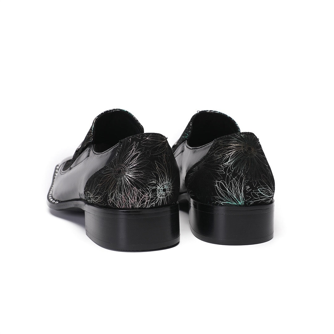 Green Embroidered Metal Square Head Leather Men's Formal Shoes Pointed dress shoes for men Party Banquet and Wedding Oxford Large size men's shoes mens brogue shoes derby shoes Elegant Shoes