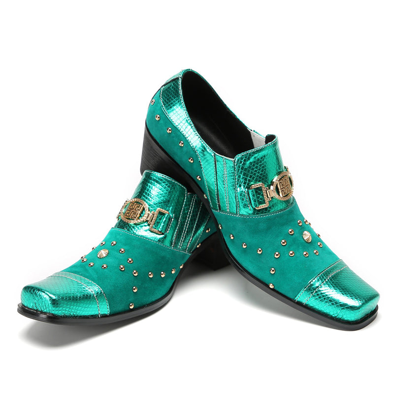 • Green studded high-heeled dress shoes Men's fashion leather dress shoes