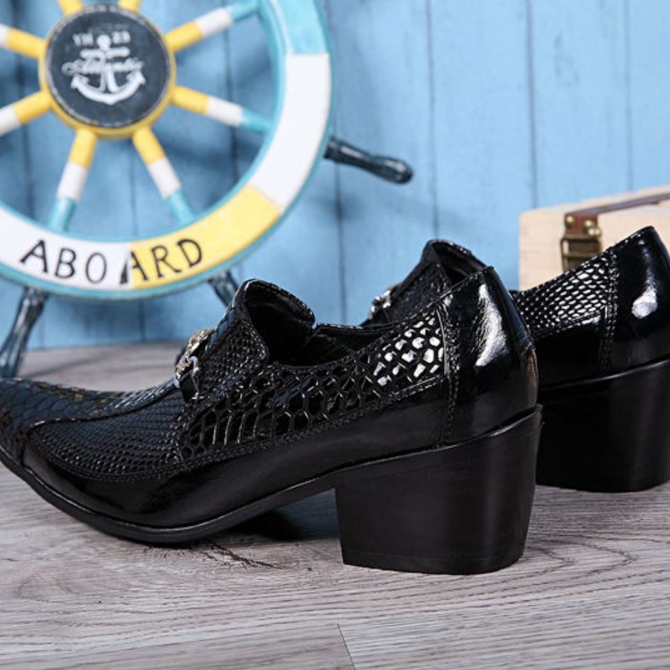 • Personalized snake pattern high-heeled loafers men's bar nightclub leather shoes