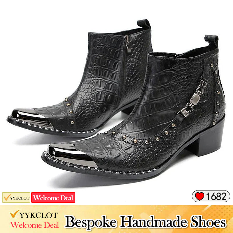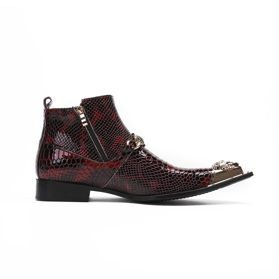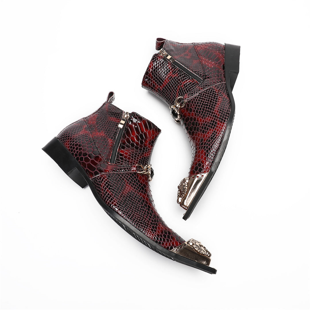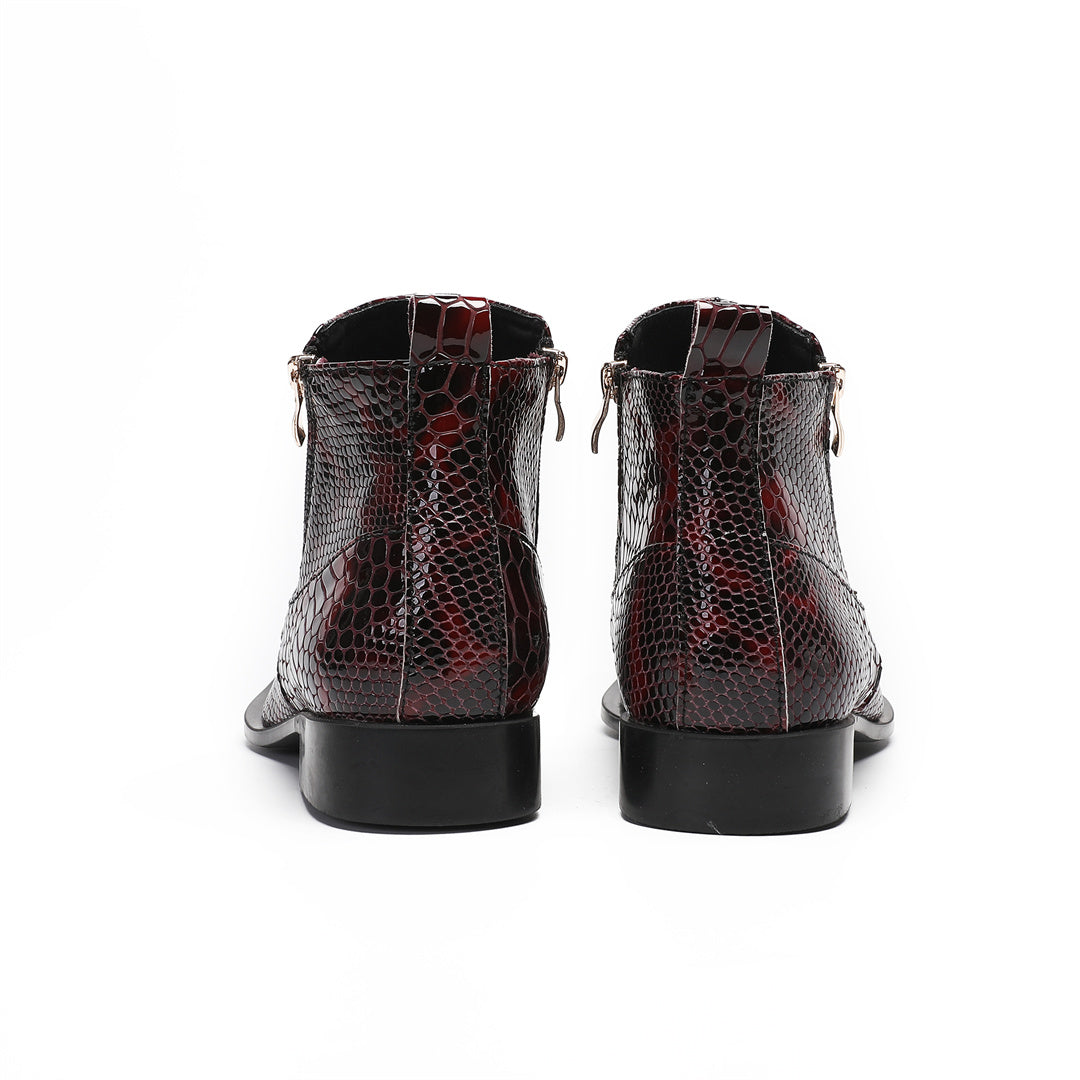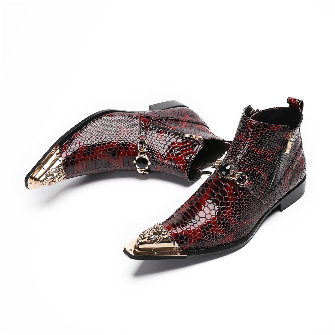 Wine red fashion pointed leather shoes men's low boots