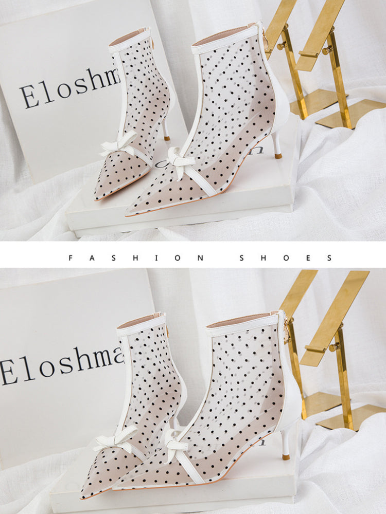 Fashion perspective polka dot mesh hollow high heels