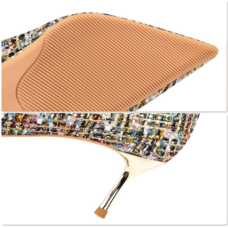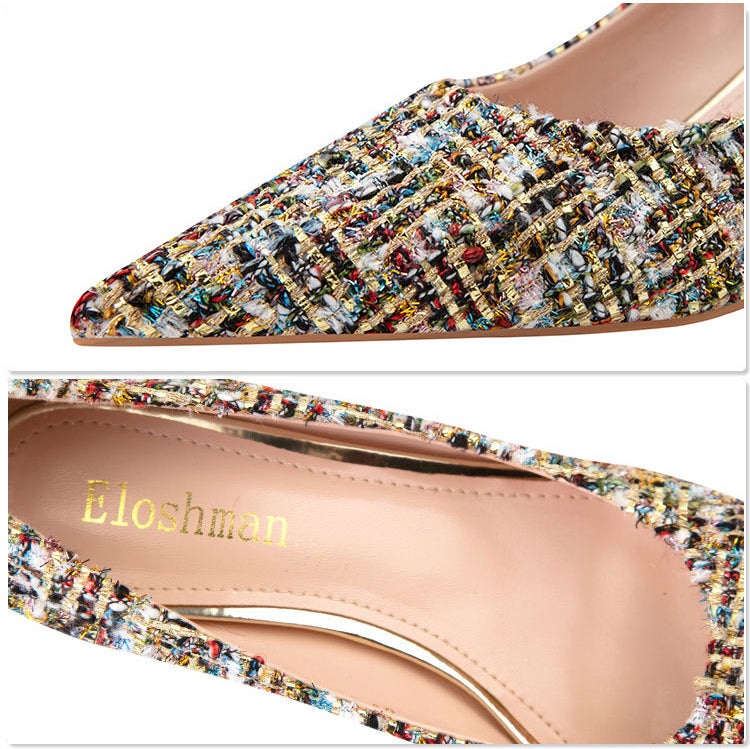 Fashion sexy nightclub plaid high heels