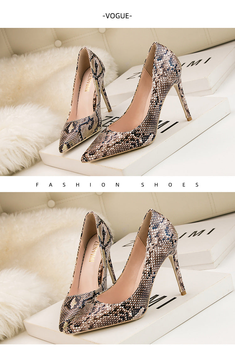 Fashion snake pattern pointed head shallow mouth nightclub high heels